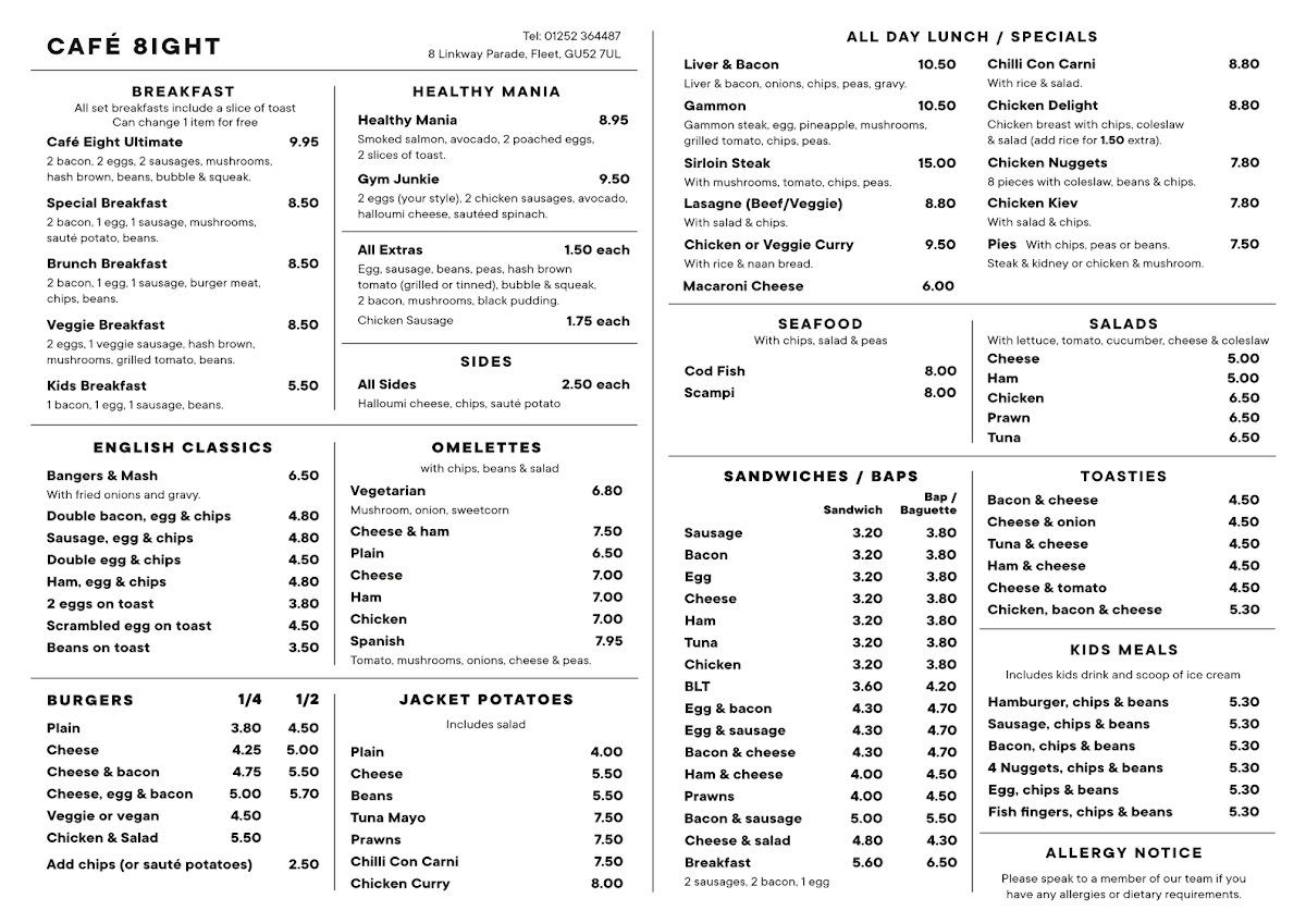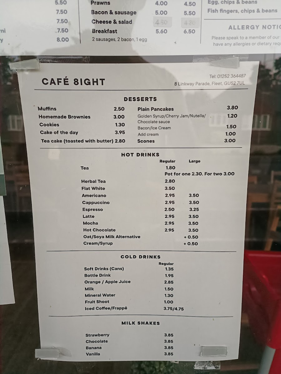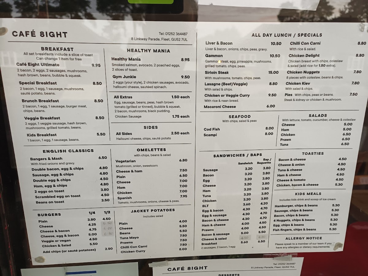 Prepare to indulge in a delightful culinary experience at Café 8ight, a charming café located at 8 Linkway, Fleet GU52 7UL, in the United Kingdom. This cozy spot is a must-visit for anyone seeking great food coupled with a friendly atmosphere.